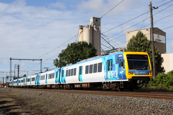 Мельбурн имеет 16-линейную городскую тяжелорельсную железнодорожную сеть, которая управляется Metro Trains Melbourne состоящей из 326 электропоездов. За исключением линии Stony Point, вся городская железнодорожная сеть электрифицирована. Городская сеть считается гибридом пригородного железнодорожного транспорта, а не системой метрополитена с высокой частотой и высокой пропускной способностью[41]. Столичные, сельские и межгосударственные железнодорожные сети соединяются воедино на железнодорожной станции Southern Cross railway station, в центральном деловом районе Мельбурна, с другой главной станцией, являющейся железнодорожным вокзалом Флиндерс-стрит.