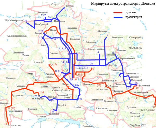 - Схема движения городского транспорта Донецка на карте (трамвай, троллейбус, автобус и маршрутки Донецка). Архивировано 28 ноября 2012 года.