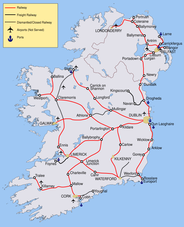Бо́льшая часть транспортной системы Ирландии является общественным достоянием по обе стороны ирландской границы. Сети автодорог Ирландии развивались самостоятельно в этих двух частях, на которые Ирландия разделена, в то время как железнодорожная сеть была в основном сформирована до разделения Ирландии.