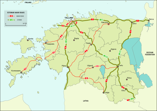 | 1 | Таллин — Нарва | 213 | автодорога, начинающаяся примерно в 60 км от Таллина направлением на Санкт-Петербург, продолжается как российская автомагистраль Нарва (А180) | |