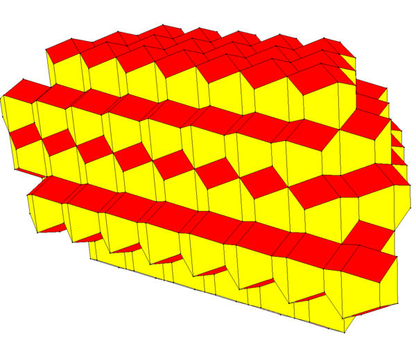 Данное заполнение является диаграммой Вороного для центров одинаковых сфер в шестиугольной плотной упаковке (ГП).