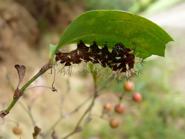 Кормовое растение гусениц — травянистая лиана Smilax oldchami, Heterosmilax japonica, Smilax aspericaulis, Smilax bracteata, Smilax china, Smilax lanceifolia, Smilax perfoliata, Smilax riparia, Smilax sebeana, Smilax sieboldii, Streptopus amplexifolius, Tricyrtis[4].