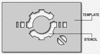- В черчении металлические или пластмассовые трафареты облегчают нанесение надписей и стандартных геометрических фигур на чертежи.