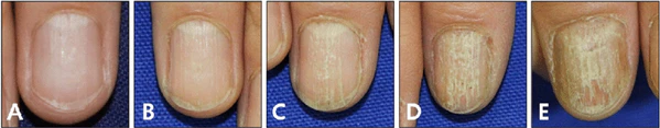 Патологический процесс может затрагивать один или несколько ногтей, в ряде случаев — все двадцать. Выраженность поражения варьирует от ногтя к ногтю, возможно сочетание различных степеней тяжести у одного пациента[5].