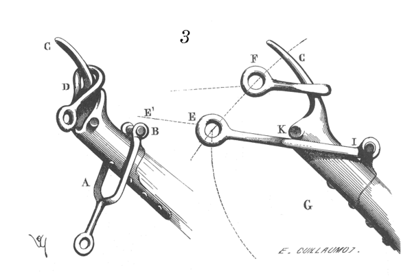 Отличительной особенностью является механизм автоматического раскрытия пращи требушета, когда происходит выстрел и снаряд начинает самостоятельное перемещение. Длинный рычаг требушета соединён с двумя верёвками пращи: один конец постоянно привязан к рычагу, второй в виде петли накидывается на конец рычага, на котором устроен крюк. Во время выстрела, когда праща набрала скорость, а перекладина с противовесом, проделав основной путь, начинает замедляться, концы пращи начинают скользить вокруг длинного конца с крюком, пока один из концов не соскакивает с крюка, вследствие чего праща раскрывается. Кривизна крюка и его длина определяют момент освобождения снаряда и, соответственно, траекторию его полёта. Стреляющие могли корректировать дистанцию стрельбы и крутизну траектории (для стрельбы с горы, в гору, по прямой) с помощью специальных колец, укорачивающих крюк, либо заменяя сам крюк.