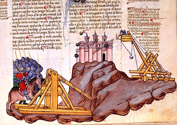 Первые упоминания об использовании осадных машин при штурме европейских городов сделаны ещё в IX веке, вероятно, с этого времени враждующие стороны применяют примитивные приспособления типа перрьеров для перебрасывания камней. По опыту современных французских любительских реконструкций такой перрьер, обслуживаемый командой в 8—16 человек, способен метать камни весом 3—12 кг на 40—60 м с частотой 1 выстрел в минуту.