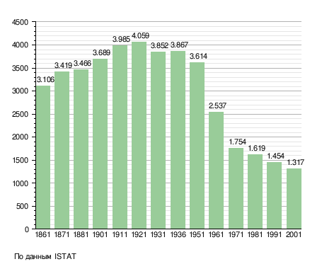 Население составляет 1296 человек (2008 г.), плотность населения составляет 21 чел./км². Занимает площадь 62 км². Почтовый индекс — 47019. Телефонный код — 0546.