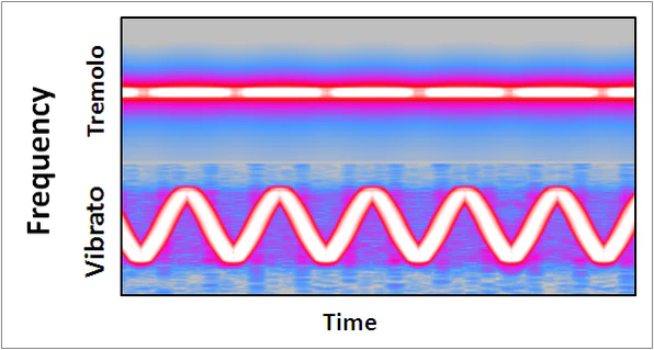 На практике исполнителю сложно добиться абсолютно «чистого» вибрато или тремоло, при которых изменяется только высота или только громкость; как правило, оба параметра варьируются одновременно. При электронной обработке сигнала возможно получить или продемонстрировать чистое тремоло и/или вибрато.[1]