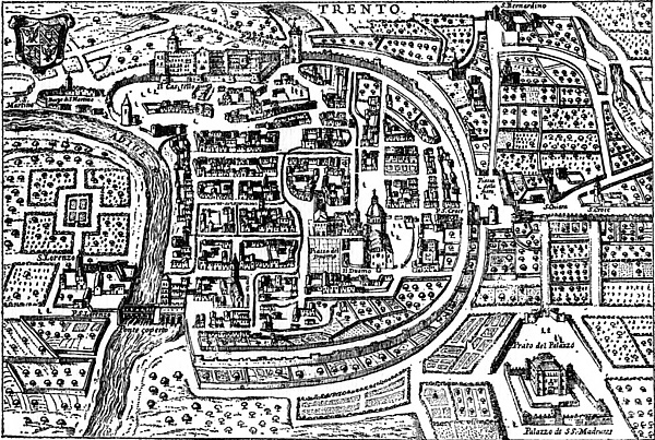 В XVI веке Тренто стал местом проведения знаменитого Тридентского собора (1545—1563), открывшего период Контрреформации в Европе и утвердившего ряд важнейших католических догматов. Значительную роль в работе собора играл князь-епископ Трента Кристофоро Мадруццо (1539—1567). К этому времени само епископство попало под протекторат австрийских Габсбургов, которые фактически подчинили себе административный аппарат епископства. Тем не менее Тренто сохраняло формальную независимость до Наполеоновских войн. В состав княжества входили достаточно обширные территории в Южном Тироле, по обоим берегам реки Адидже.