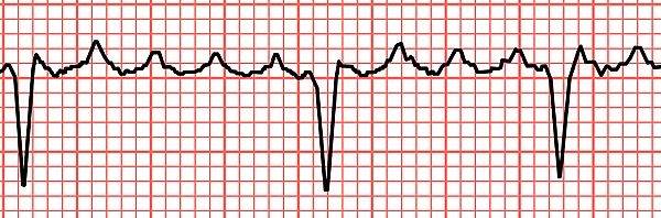 - Желудочковые комплексы не изменены, каждому предшествует определённое количество волн F (2:1, 3:1, 4:1).[1][13][14]