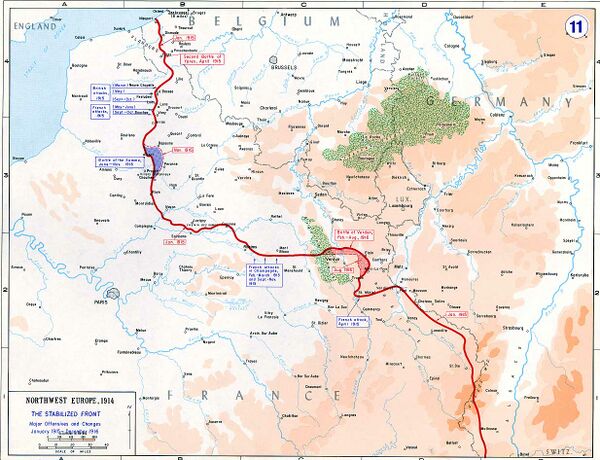 | Изменения | В итоге осенней операции в Артуа войскам Англии и Франции удалось захватить двадцати двух километровый участок в ширину и четырёх в глубину. Командование, после неудачных попыток войсками овладеть позициями немцев, прекратило все наступательные действия на всем франко-германском фронте. | ||