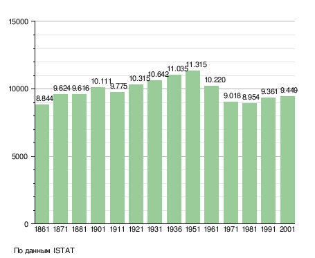 Население составляет 9606 человек (2008 г.), плотность населения составляет 102 чел./км². Занимает площадь 93 км². Почтовый индекс — 62010. Телефонный код — 0733.