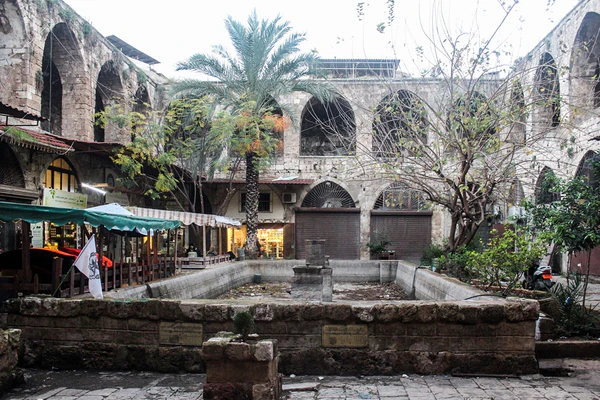 В отличие от других ханов, построенных вокруг квадратного двора, эль-Хайятин, построенный в XIV веке, представляет собой 60-метровый проход с арками по бокам[28].
