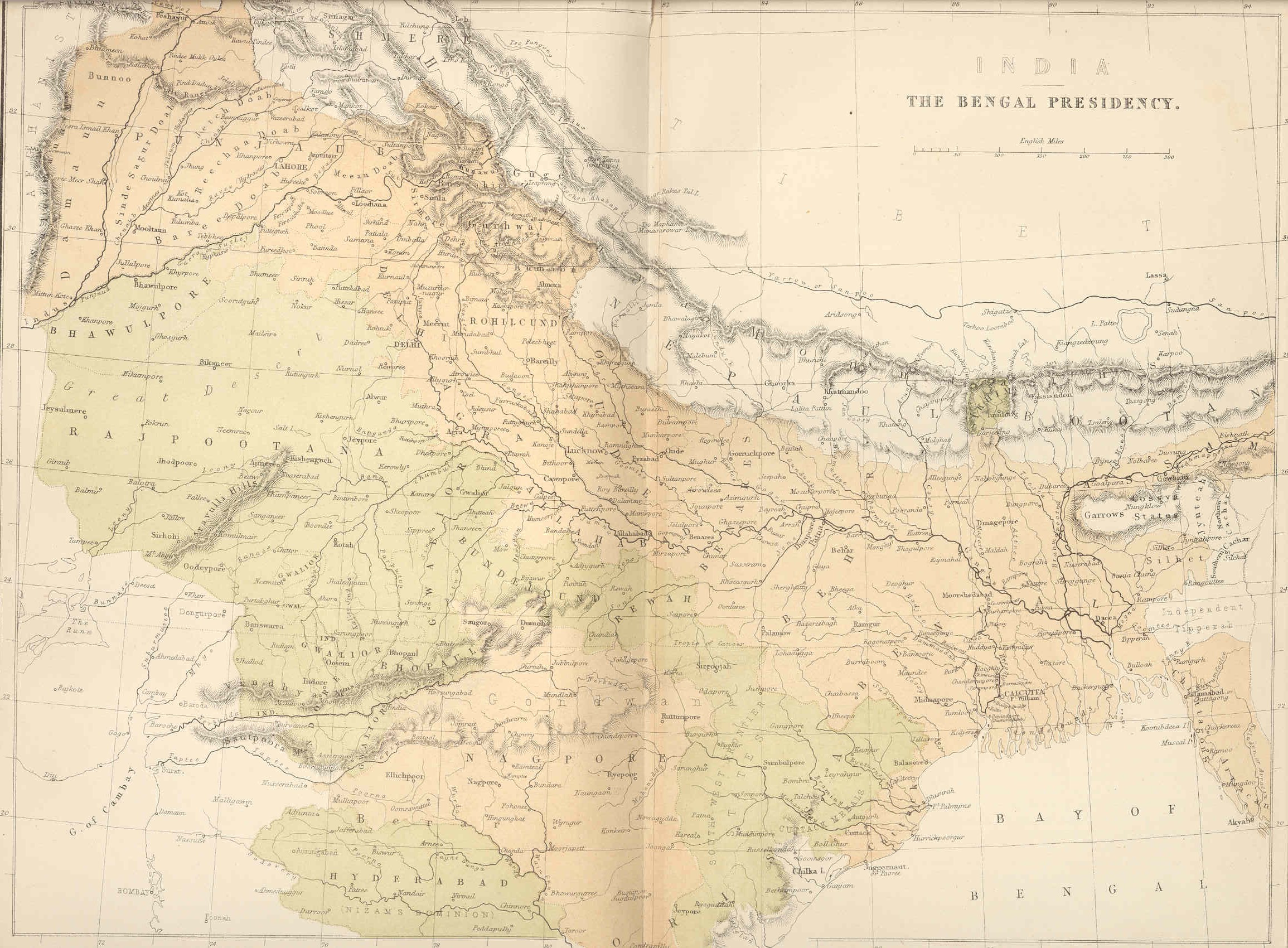 Карта Бенгальского президентства 1858 года и княжество Трипура в крайнем правом углу |