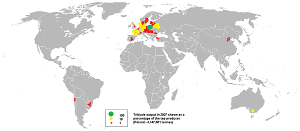 Основные производители тритикале — Польша, Германия, Франция и Белоруссия.