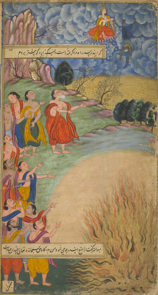 Во время скитаний Тришанку встретил мудреца Вишвамитру и обратился к нему за помощью. Услышав об участи царя, Вишвамитра, соперничающий с Васиштхой, согласился исполнить необходимые обряды, чтобы вознести Тришанку на небо в его физическом теле. Яджны (ритуалы) начались, и с помощью чудодейственной силы мудреца бывший царь Тришанку начал возноситься на небеса. Когда он прибыл в рай, дэвы встревожились от этого противоестественного явления. Ведомые Индрой, они не позволили Тришанку войти и выгнали его. Тришанку начал падать обратно на землю. Взбешенный Вишвамитра не признал поражения от Индры. Мудрец использовал свои способности и не дал Тришанку упасть, в результате чего тот оказался подвешенным в воздухе.