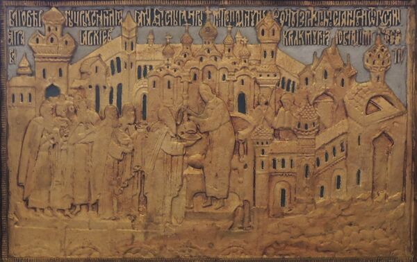 «Отроцы благочестивые в пещи» — излюбленный сюжет христианской иконографии, известный уже с VII века. Этот мотив был частой темой фресковой живописи, см. например, роспись московского Благовещенского[26] и Успенского соборов, а также иконописи[27]. Знаменитым является белокаменный рельеф Успенском соборе во Владимире.