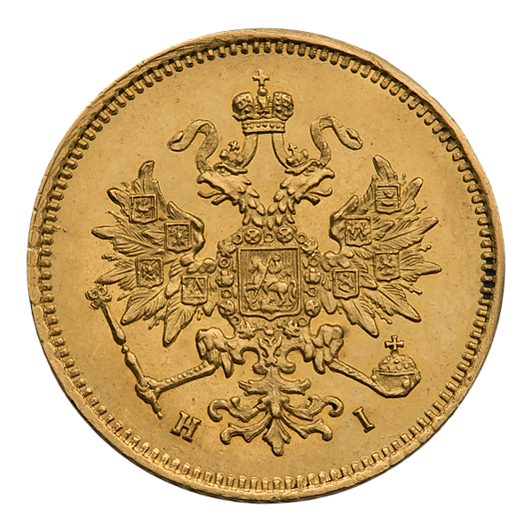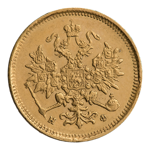 Во времена правления Александра II три рубля чеканились из золота 917 пробы, их диаметр составляет 22,7 мм, а вес равен 3,93 г, чистого золота 3,6 г. Были выпущены в Санкт-Петербургском монетном дворе в количестве 143 003 экземпляров. Гурт является пунктирным[8][9][10][11].