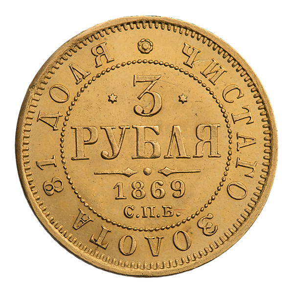 Три рубля Александра II чеканились с 1869 по 1881 год, у которых существуют разновидности[11].