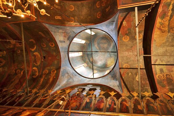 Крупнейшее сооружение монастыря — Успенский собор — воздвигнуто в 1559—1585 годах по образцу Успенского собора Московского Кремля. Собор отличают лаконичность форм и простота декора стен, украшенных лишь характерным для владимиро-суздальского зодчества аркатурно-колончатым поясом. Лопатки, разделяющие северную и южную стену на доли, напоминают контрфорсы. Собор увенчан массивным пятиглавием. Широкие работы по обустройству церкви выполнены по велению царской четы — царя Феодора Иоанновича и царицы Ирины Феодоровны Годуновой. Они были проведены в 1585—1586 годах, в этот момент был устроен придел Феодора Стратилата и святой великомученицы Ирины, которые являлись тезоименитыми святыми царской четы[20]. В работе над иконостасом принимал участие Симон Ушаков, фрески выполнены в 1684 году Дмитрием Григорьевым и другими. Стенопись Успенского собора подчинена строгому канону и необычайно цельна; все картины объединяет общий цвет фона, спокойная сиренево-фиолетовая гамма рисунка. В XVIII веке собор был частично перестроен; так, купола были заменены на луковичные, расширены окна[11].