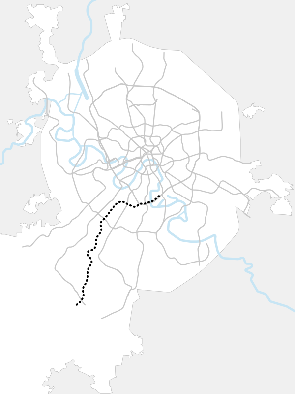 Первый участок от Московского центрального кольца до посёлка Коммунарка из одиннадцати станций планировалось запустить в сентябре 2024 года[6]. Длина линии составляет 25 км, в том числе 1,8 км от станции «ЗИЛ» вдоль Московского центрального кольца до станции «Крымская», 7,3 км до Большой кольцевой линии (станция «Новаторская»), 8,7 км до МКАД (станция «Тютчевская») и 7,2 км по территории Новой Москвы до станции «Коммунарка»[2][3].