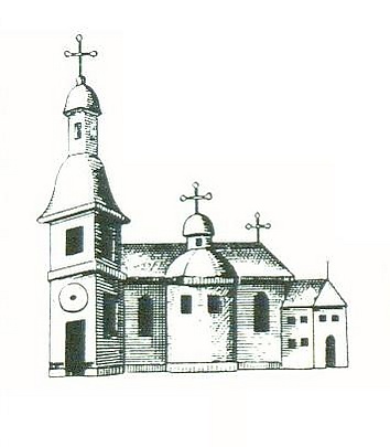 Церковь — памятник архитектуры барокко и рококо, представляет собой однонефный каменный храм с вытянутым пресвитерием, сакристиями и полукруглой алтарной апсидой, трёхъярусной башней-колокольней и при входе (первый ярус квадратный в плане, укреплённый контрфорсами, два верхних — восьмигранные, отделанные пилястрами), накрытой шатровой крышей. В 1668 и 1750 годах к апсиде пристроены две боковые квадратные в плане часовни, завершённые шлемовидными куполами. Стены храма укреплены контрфорсами, прорезаны большими окнами с полуциркульными завершениями. Входящий портал церкви оформлен ордерными элементами: полуколоннами, упрощённым антаблементом, архивольтами.