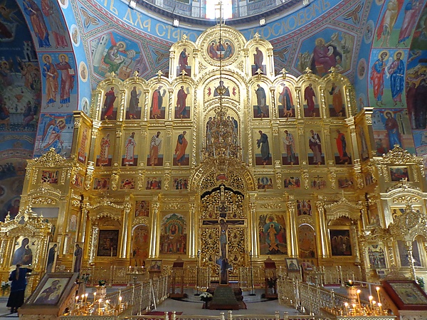 Оригинальный иконостас был утрачен в советское время. Интерьер храма, созданный в 1990—2000-е годы, отличается очень темными по тону росписями «в древнерусском стиле» и имеет многоярусный иконостас.