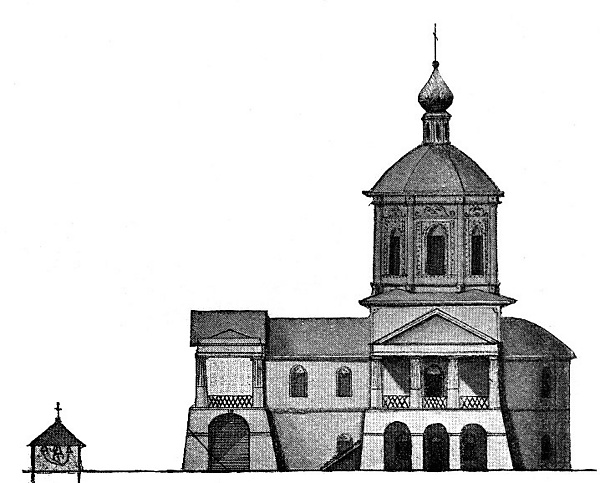 В 1836 году в нижнем Успенском храме на средства купца Филиппа Яковлевича Пулькина был устроен правый придел во имя трех святителей Василия Великого, Григория Богослова и Иоанна Златоуста. В 1837 году в том же нижнем храме иждивением того же Ф. Я. Пулькина был устроен левый придел во имя апостола Иакова Алфеева, брата Господня, и преподобномученицы Евдокии. Они находились в новой трапезной по обеим сторонам арки, отделявшей её от старой. Оба придела были крошечными. В иконостасе правого была, кроме царских врат, одна северная дверь. В левом придельном иконостасе боковых дверей не было вообще. Эти приделы были разобраны при закрытии храма и впоследствии не возобновлялись.