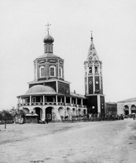 | Приделы | В верхнем храме — во имя Святой Живоначальной Троицы, в нижнем — в честь Успения Божией Матери. В нижнем храме имеется приставной престол во имя преподобного Сергия Радонежского |