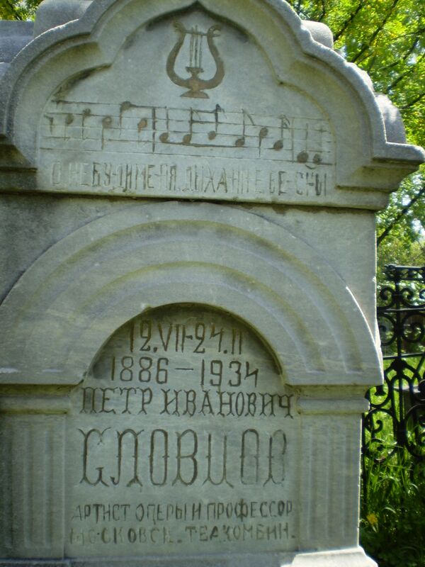 - Могила оперного певца П. И. Словцова (1886—1934)