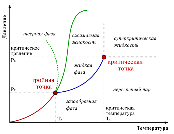 | Вещество | Фазы | Температура, °С | Давление, МПа |