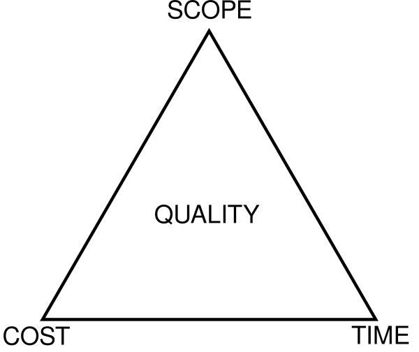 Классическая форма тройственной ограниченности описывает баланс между содержанием проекта, стоимостью, временем и качеством. Качество было добавлено позже, поэтому изначально именована как тройственная ограниченность.