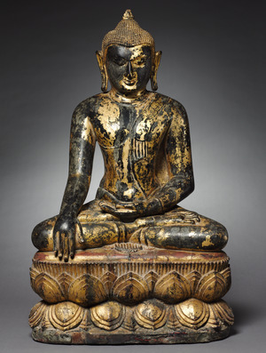 Форма трона варьируется, но всегда символизирует раскрывающийся цветок Nelumbo Nucifera, индийского лотоса. В некоторых буддийских легендах маленький Будда появился из цветка лотоса. Индийский лотос — это водное растение, похожее на водяную лилию, хотя на самом деле не имеет с ней тесного родства. Среди других необычных характеристик Nelumbo Nucifera обладает особым свойством отталкивания воды, известным как эффект лотоса или ультрагидрофобность. Символизм лотоса заключается также в том, что он возвышается над водной средой, в которой живет, и не загрязняется ею, что служит образцом для буддистов.[2] Согласно палийскому канону, сам Будда положил начало этой часто повторяемой метафоре в «Аггуттара-никая», говоря, что цветок лотоса поднимается из грязной воды, не испачканный, так же как он (Будда) поднимается из этого мира, свободный от нечистоты, о которой говорится в сутре.[3]