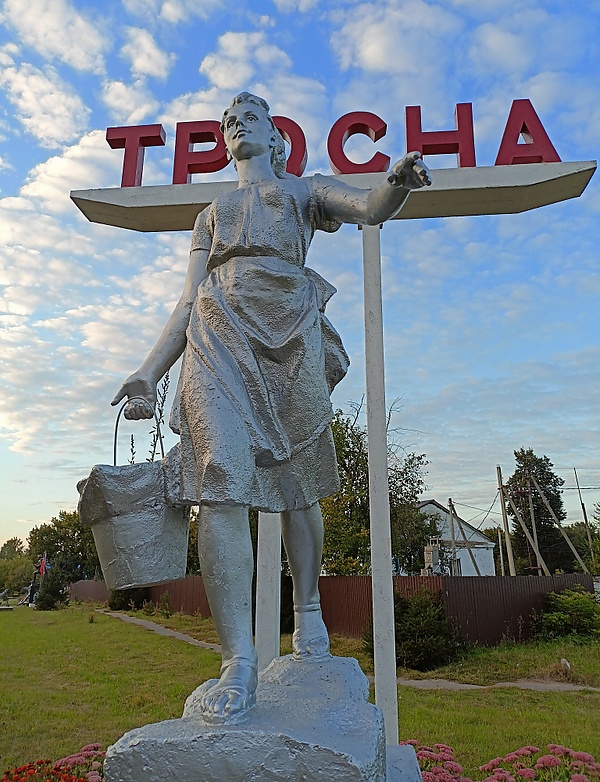 - Памятный знак «Труженица тыла» на въезде в Тросну со стороны Курска.