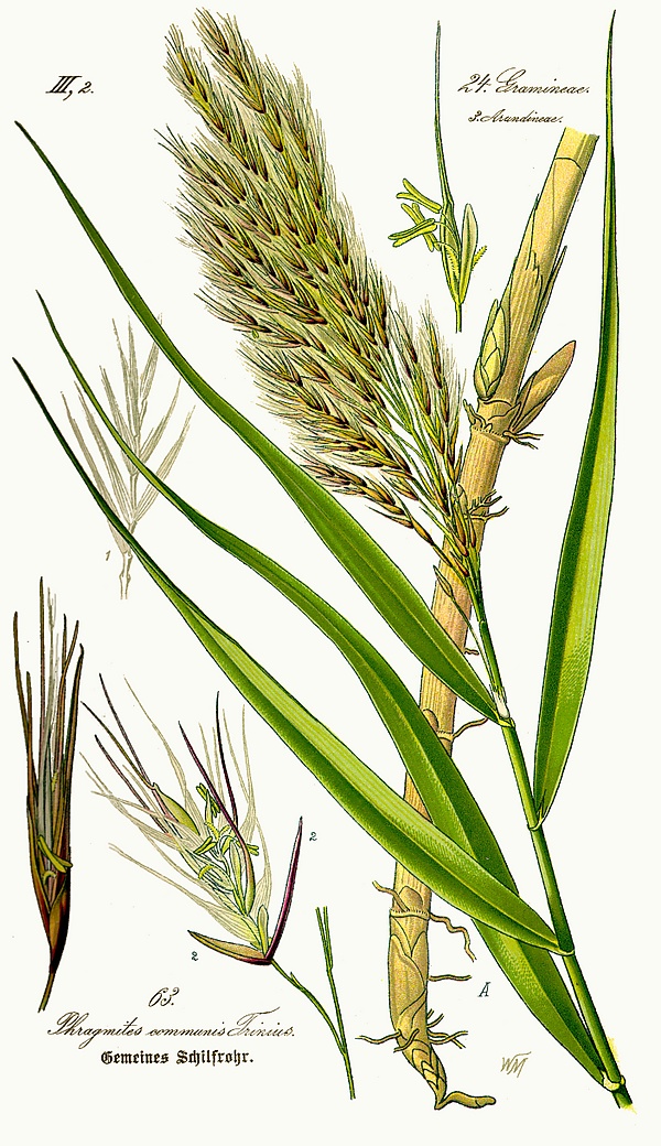 Phragmites communis Trin. [2] — Тростник обыкновенный = Phragmites australis (Cav.) Trin. ex Steud. — Тростник южный |