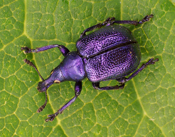 Жук длиной 5,5—9 мм. Окраска с металлическим блеском. Существует несколько цветовых форм — окраска может быть ярко-зеленой или ярко-синей, золотисто-зелёной, сине-зелёной, красноватой, бронзовой, бронзово-зеленой, реже зеленой с синими надкрыльями или сине-зелёной с зелёными надкрыльями. Окраска нижней стороны тела совпадает с окрасом верха. Усики чёрные. Верхняя сторона тела голая, стерниты брюшка и пигидий покрыты короткими светлыми волосками. У самца на боках переднегруди расположены два острых шипа, направленные вперед; у самки шипы отсутствуют. Голова продолговатая, выпуклая, с глубоким вдавлением на лбу, покрыта мелкими и густым точками. Глаза крупные, округлые, несколько выпуклые. Головотрубка больше чем в полтора раза длиннее самой головы, несколько расширенная к вершине, по бокам окаймлена очень тонкими килями. Переднеспинка по своей длине равна ширине, сверху и по бокам является шарообразно выпуклой, с продольной серединной пинией. Щиток небольшой, четырехугольный, покрытый мелкими и густым точками. У самца головотрубка в 1,5 раза длиннее головы, несколько изогнута у места прикрепления усиков[2][4].