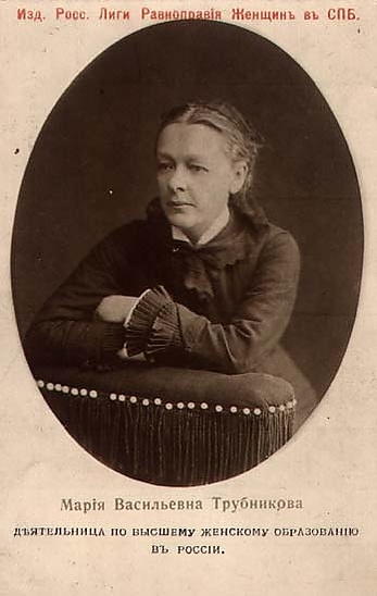 В 1854 году[3] выйдя замуж за издателя-редактора «Биржевых Ведомостей» К. В. Трубникова, переселилась в Петербург. Её салон в Петербурге стал местом встреч либералов и радикалов[3]. Близко сойдясь с Н. В. Стасовой основала в 1860 году Общество дешёвых квартир, а в 1862 году — Общество переводчиц, в состав которого вошли выдающиеся представительницы женского движения того времени. Общество ставило своей задачей дать русским женщинам возможность существования исключительно умственным трудом, а также создать в России систему высшего женского образования. Трубникова и Стасова привлекали к этому делу людей науки и крупных деятелей литературы.