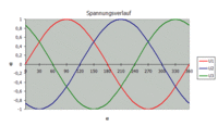 Несложно показать, что линейное напряжение сдвинуто по фазе на относительно фазных: