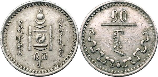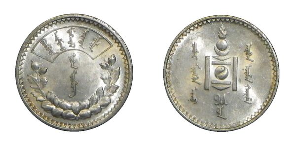 - 1925 (1-5 мунгу — медь, 10-20 мунгу — серебро 0.500, 1 тугрик — серебро 0.900)
