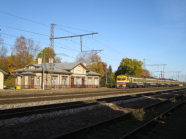 Деревянное пассажирское здание станции благополучно пережило Первую и Вторую мировые войны и сохранилось в первоначальном виде. Во время массовых репрессий 1941 и 1949 годах здесь комплектовались составы с депортируемыми, которые отправлялись отсюда в Ригу и затем дальше в РСФСР. В память об этих событиях в 1989 году неподалёку от станции сооружён мемориал памяти жертв сталинских репрессий.