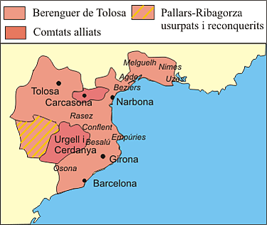 В начале X века в вассальной зависимости от графов Тулузы находились прочие бароны Лангедока. В то же время графы Тулузы успешно боролись против норманнов, над которыми в 923 году Раймунд II (918—923) в союзе с герцогом Аквитании Гильомом II одержал блестящую победу.