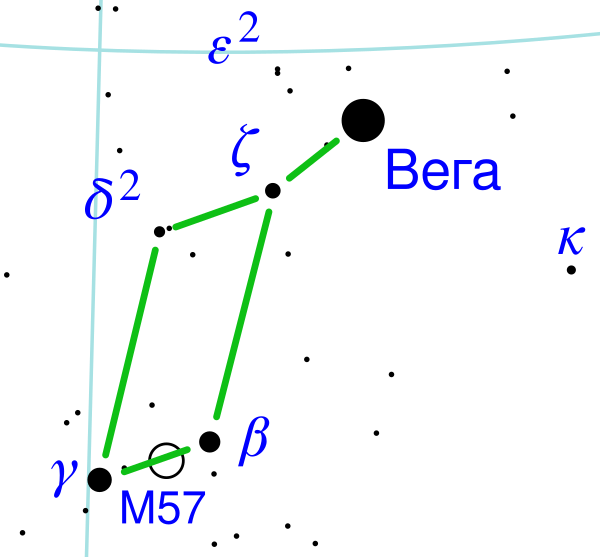 Туманность находится практически на прямой, соединяющей Бету и Гамму Лиры, приблизительно на 40% пути от первой ко второй звезде. Эти звёзды, в свою очередь, находятся рядом с одной из ярчайших звёзд неба — Вегой. Лучшее время для наблюдения туманности — лето, хотя в северном полушарии её можно наблюдать практически весь год[3][11].