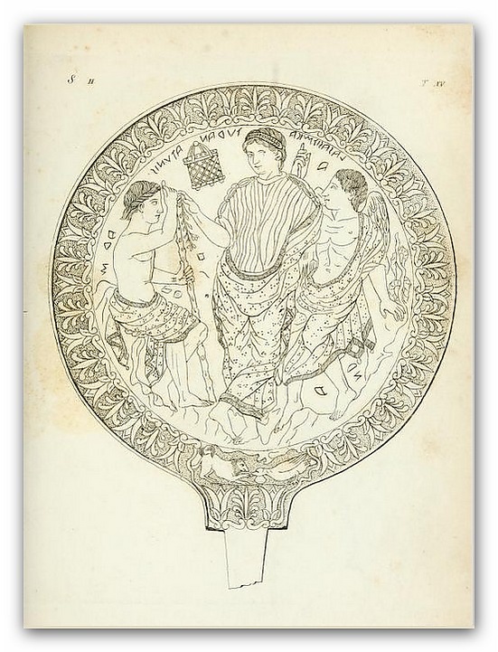 Туран также часто изображается на бронзовых зеркалах рядом с другим возлюбленным, Лараном, юным богом войны[3].