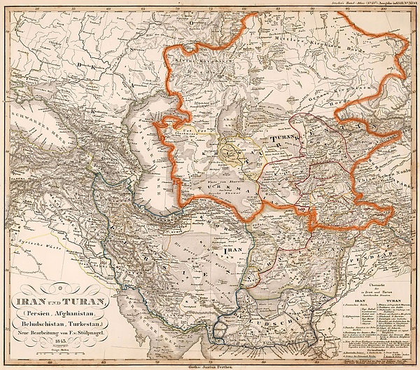 Толковый словарь персидского языка «Фарханге Анандрадж», составленный в 1888 г. Мохаммадом Падшахом в Индии, уточняет территорию Турана следующим образом: