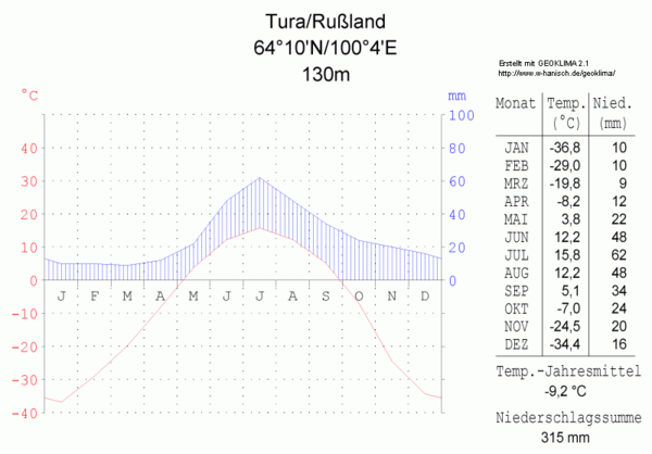 | −36,2 °C | −32,8 °C | −18,9 °C | −7,5 °C | 2,8 °C | 12,1 °C | 16,5 °C | 12,4 °C | 4,9 °C | −7,3 °C | −25,0 °C | −32,1 °C | −9,1 °C |