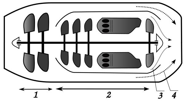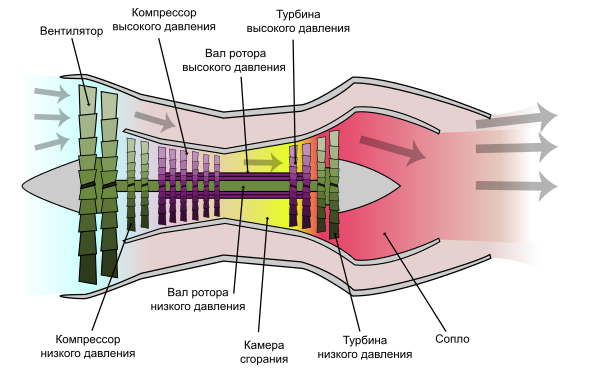 Таковым является ТРД с внутренним и наружным контурами, в котором часть энергии сгорания топлива, подводимого во внутренний контур, преобразуется в механическую работу для привода компрессора (вентилятора) наружного контура.[9]