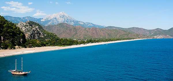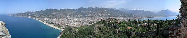 Побережье окаймляет горный хребет Тавр. Имеются естественные сосновые леса, насаженные человеком оливковые и цитрусовые рощи, а также современные пальмовые и банановые плантации. Береговая линия изрезана, имеются пляжи, вершины горных хребтов заснежены, местами берега скалисты, местами имеются уединённые бухты и заливы. Количество солнечных дней в году — 300 и более.