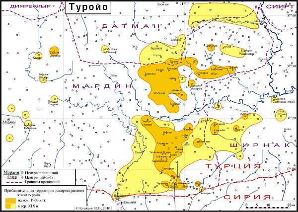Однако по данным экспедиции 2018 г. (С.Лёзов, Ю.Фурман, А.Лявданский и др.), распространенное мнение, что носителей туройо в Тур-Абдине катастрофически мало, что они преимущественно пожилого возраста и живут под постоянной угрозой физического уничтожения, неверно: значительная часть носителей — среднего и молодого возраста, в нескольких деревнях наблюдается прирост населения, в том числе за счет возвратившихся из Европы эмигрантов[1].