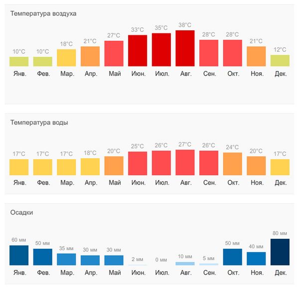 Турция — страна по большей части горная, поэтому климат часто имеет высотную зональность. В центральной части климат умеренный континентальный с жарким и сухим летом и достаточно холодной зимой. На побережье Эгейского и Средиземного морей климат средиземноморский с очень мягкой зимой. На Черноморском побережье климат морской с большим количеством осадков и прохладной зимой с редкими отрицательными температурами. На юго-востоке климат субтропический, по температурам близко подходящий к тропикам, пустынный с очень жарким летом. Климат Турции средиземноморский, умеренно-морской, континентальный и горный.