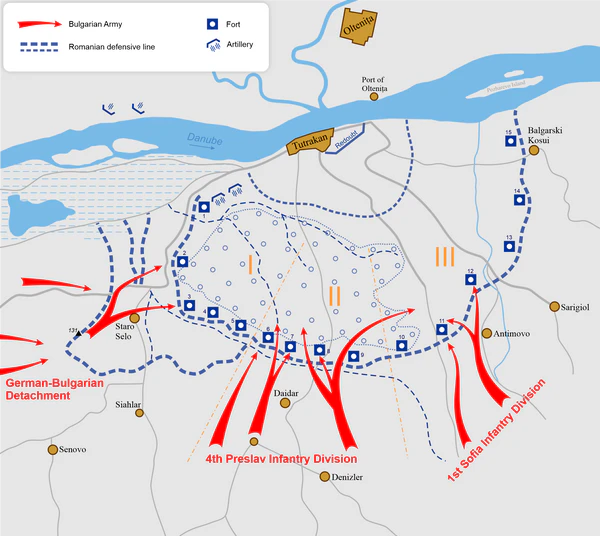 Крепость Тутракан была построена французскими инженерами в 1913 году, когда Южная Добруджа вошла в состав Румынии. В крепости имелось 151 орудие и 15 фортов. Крепость называли неприступной, однако обороняли её довольно плохо подготовленные войска, состоящие из резервистов.